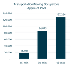 The subject site is located proximate to the deeper concentrations of the desired skills, able to access these submarkets within a 30-minute commute and able to access over 84,000 workers in the Transportation and Moving occupations.